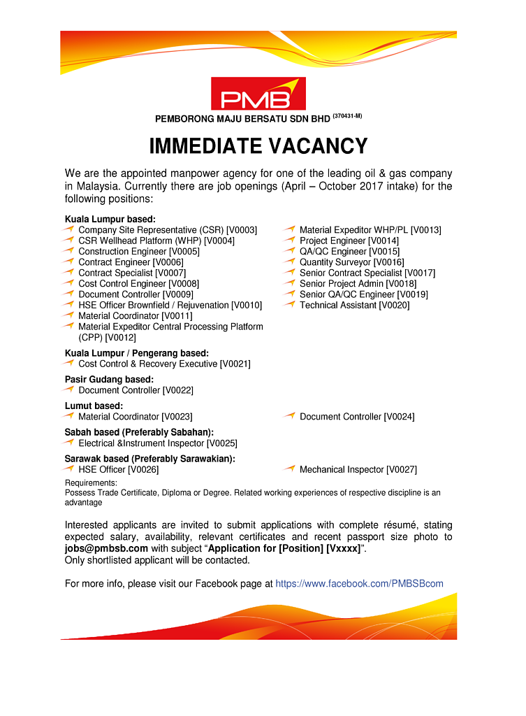 Oil Gas Vacancies Vacancies Kuala Lumpur Pengerang Pasir Gudang Sabah Sarawak
