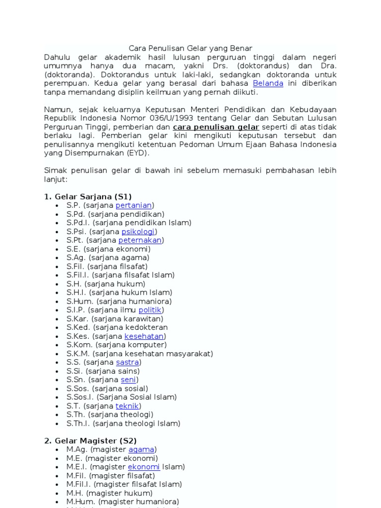 Doc Cara Penulisan Gelar Yang Benar Gunadi Di Academia Edu