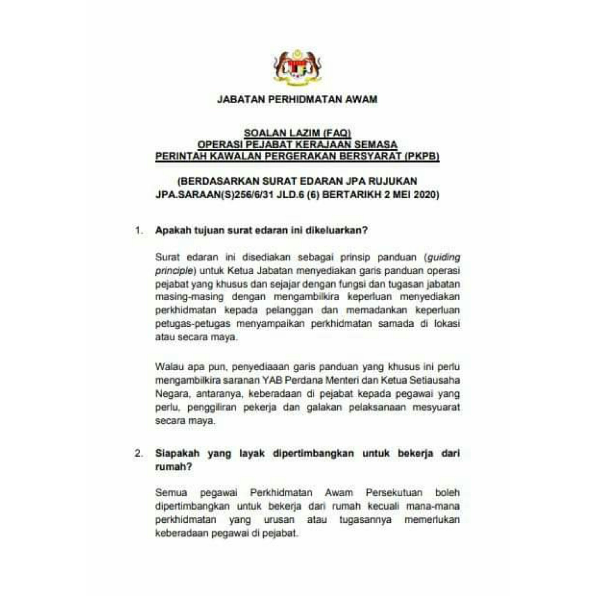 Jab Per Awam Jpa On Twitter Baca Sampai Habis Soalan Lazim Faq Operasi Pejabat Kerajaan Semasa Perintah Kawalan Pergerakan Bersyarat Pkpb Berdasarkan Surat Edaran Jpa Rujukan Jpa Saraan S 256 6 31 Jld 6 6 Bertarikh 2