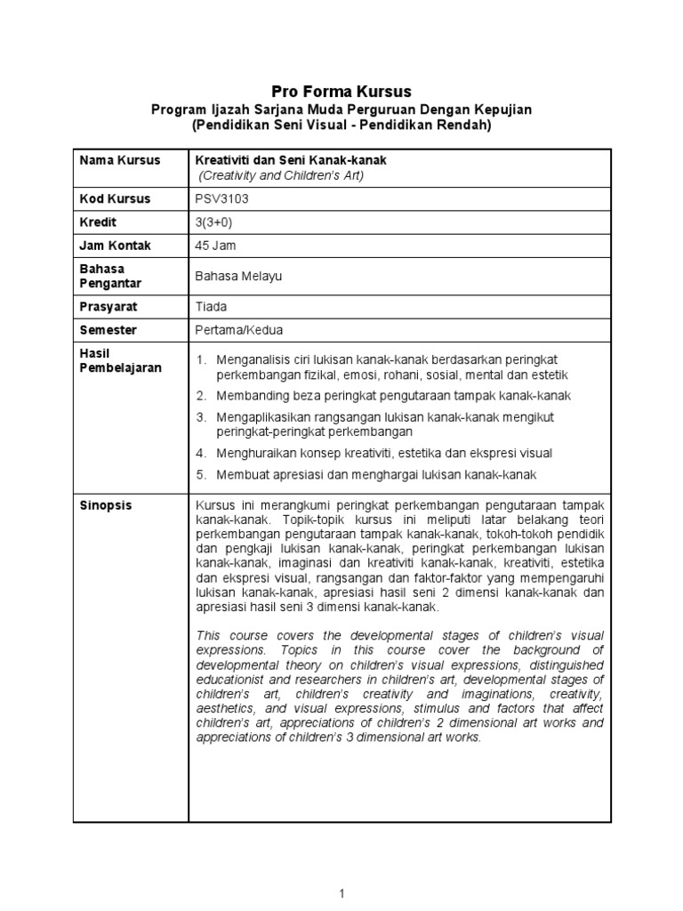 Psv3103 Kreativiti Dan Seni Kanak Kanak Sinopsis 3 Ogos 08 Doc