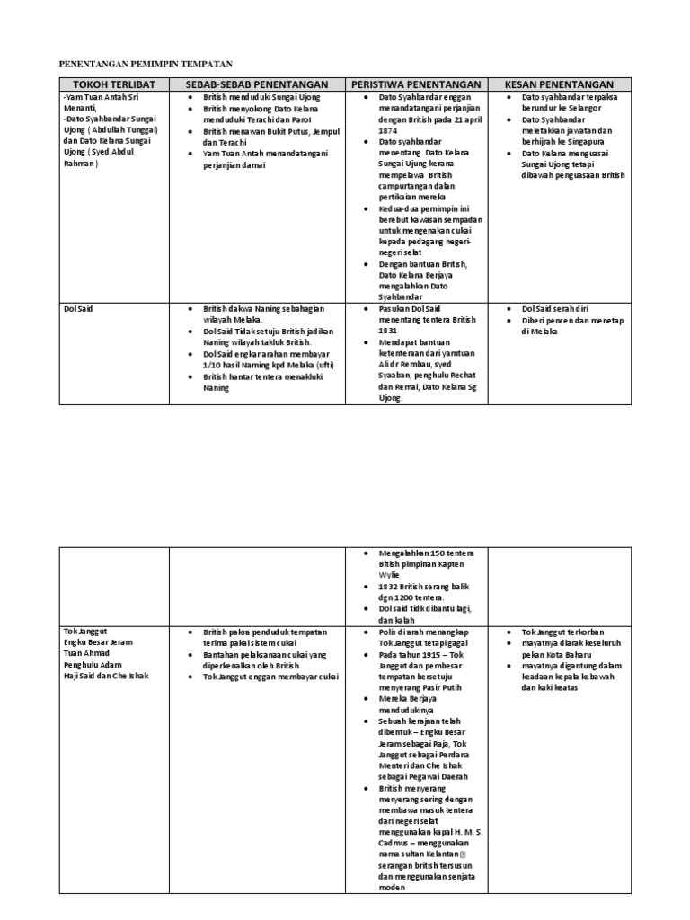 Tokoh Terlibat Sebab Sebab Penentangan Peristiwa Penentangan Kesan Penentangan