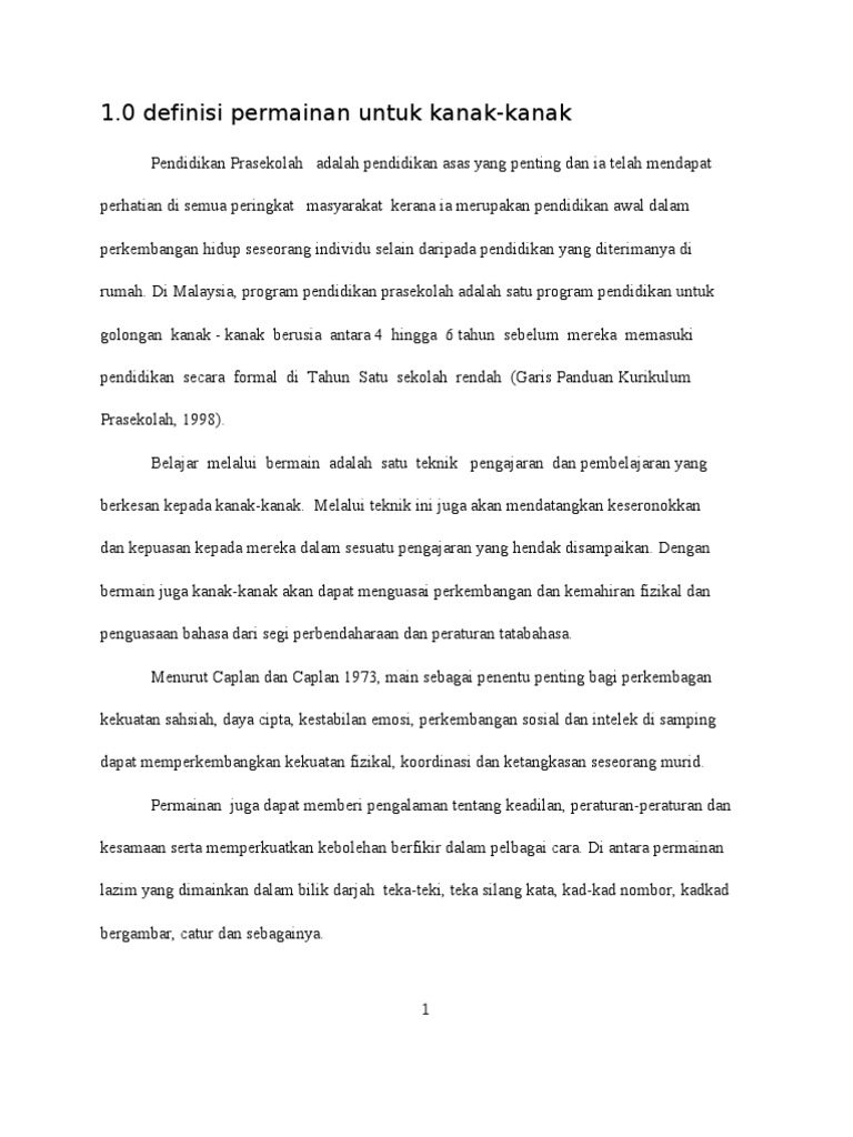 Pdf Faedah Bermain Dalam Perkembangan Kanak Kanak Prasekolah 4 6 Tahun
