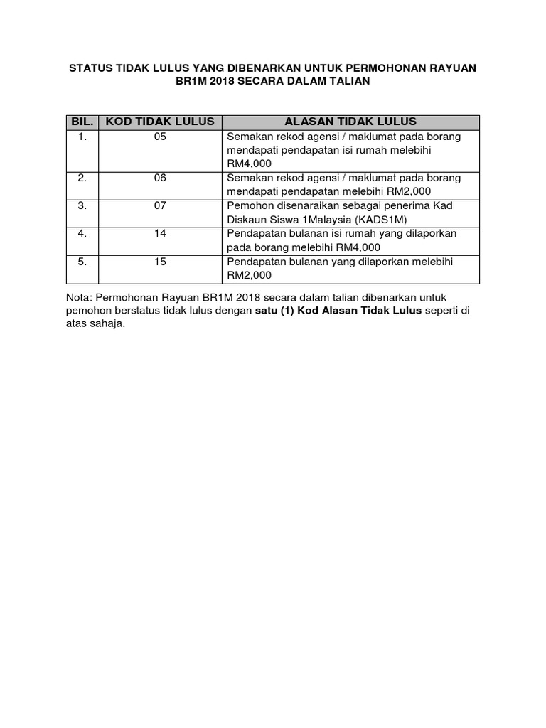 Bil Kod Tidak Lulus Alasan Tidak Lulus