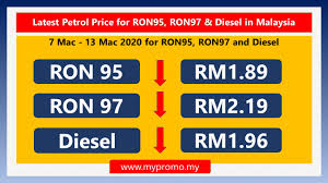 Latest Petrol Price For Ron95 Ron97 Diesel In Malaysia 7 Mac 13 Mac 2020 Mypromo My