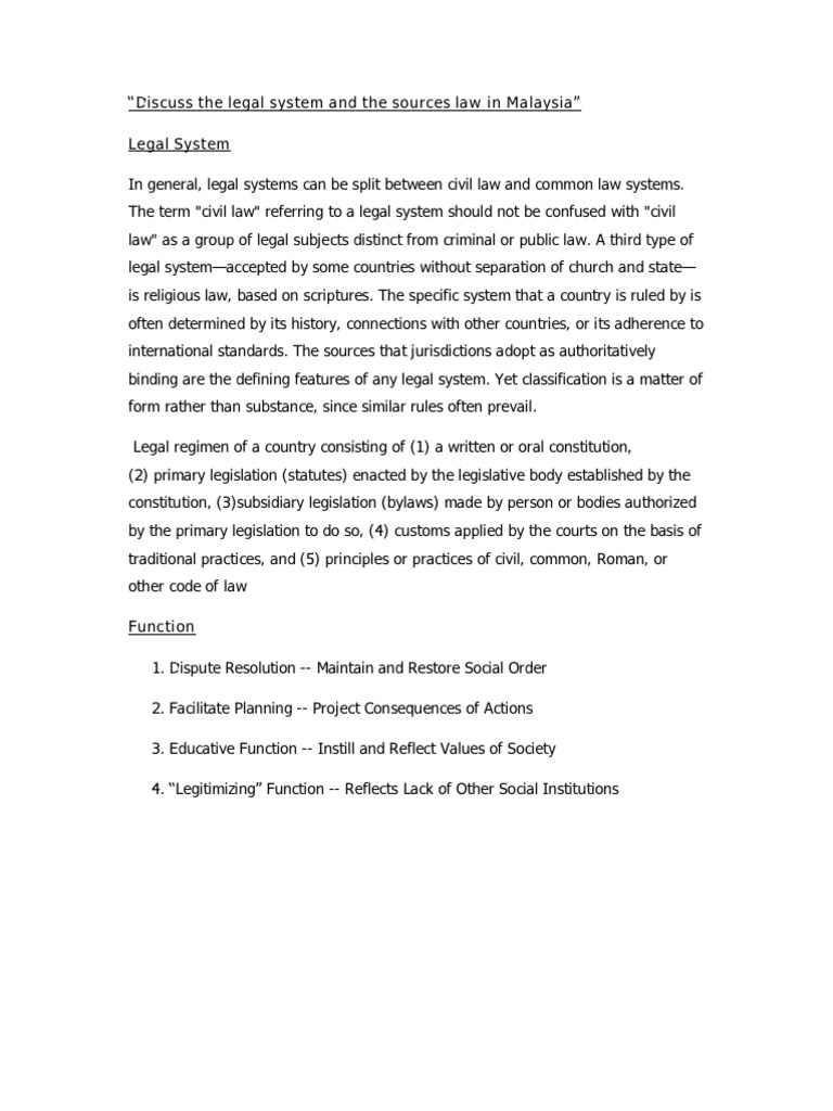 Discuss The Legal System And The Sources Law In Malaysia Government Institutions Public Sphere