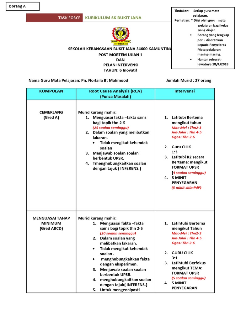 Contoh Pelan Intervensi Bahasa Inggeris Tahun 6 Raihan Jalaludin S Blog