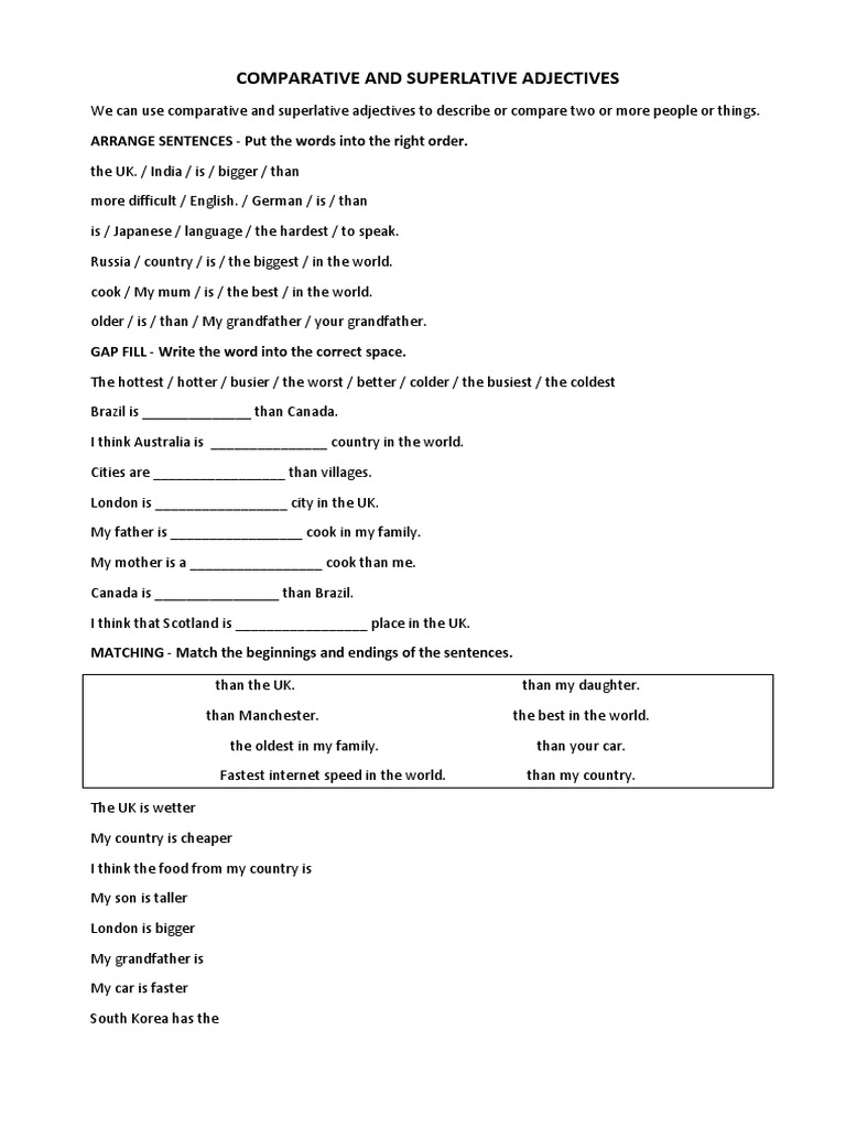Comparative And Superlative Adjectives Arrange Sentences Put The Words Into The Right Order