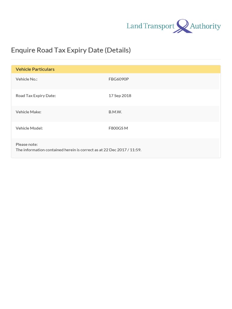 Enquire Road Tax Expiry Date Details Vehicle Particulars