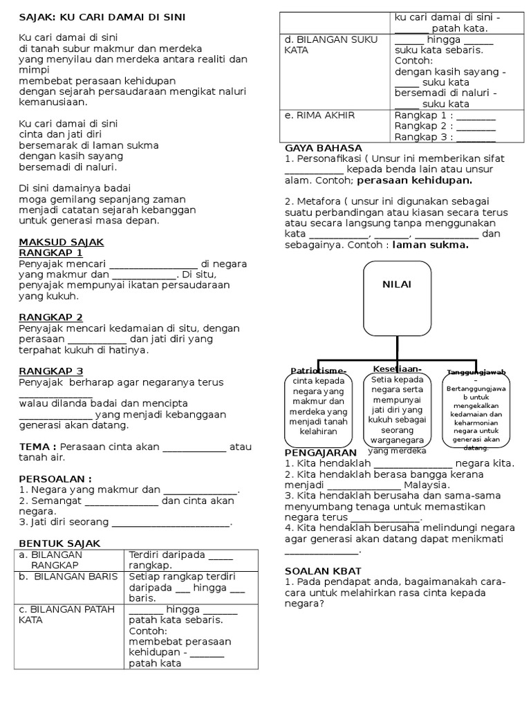 Sajak Kucari Damai Di Sini K Maksud Tema Persoalan Gaya Bahasa Nilai Pengajaran Bumi Gemilang