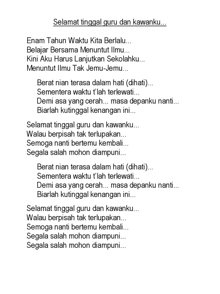 Lagu Perpisahan Sedih Selamat Tinggal Guru Dan Kawanku